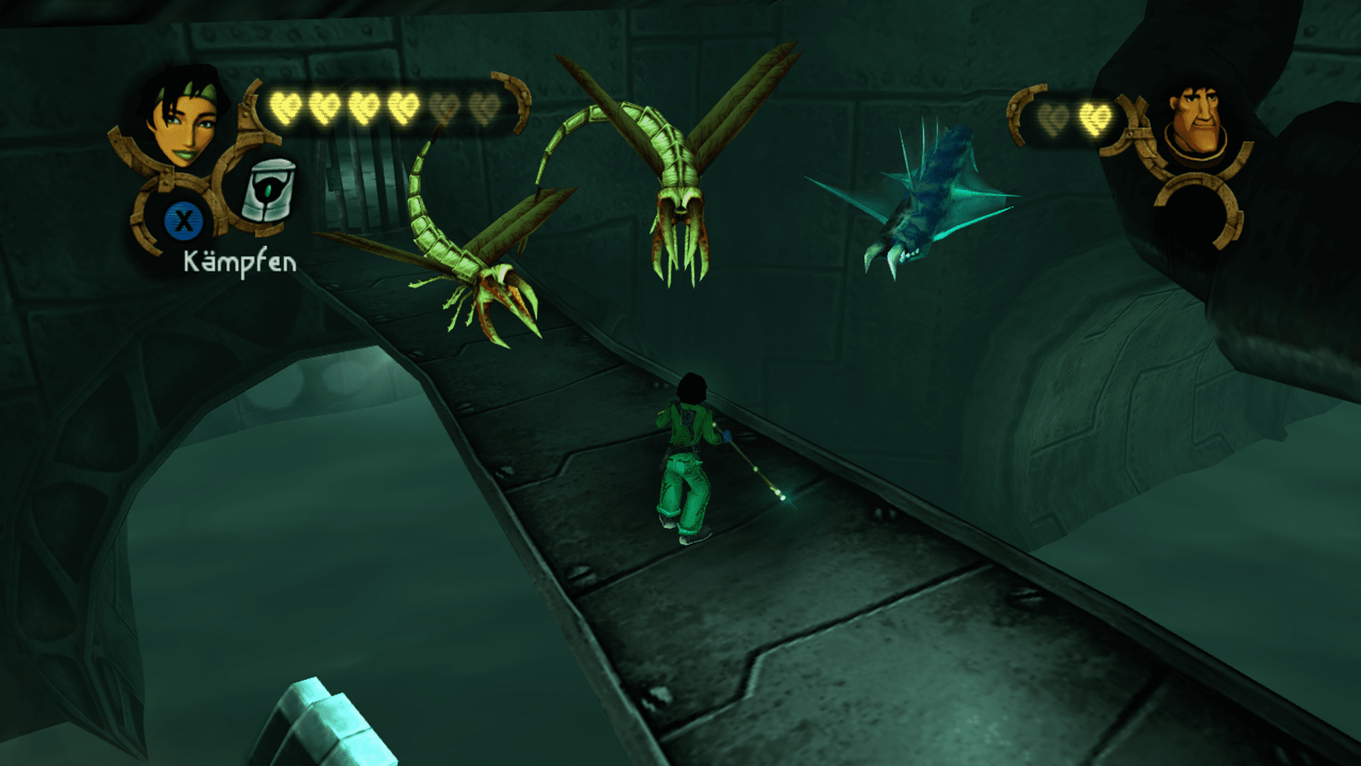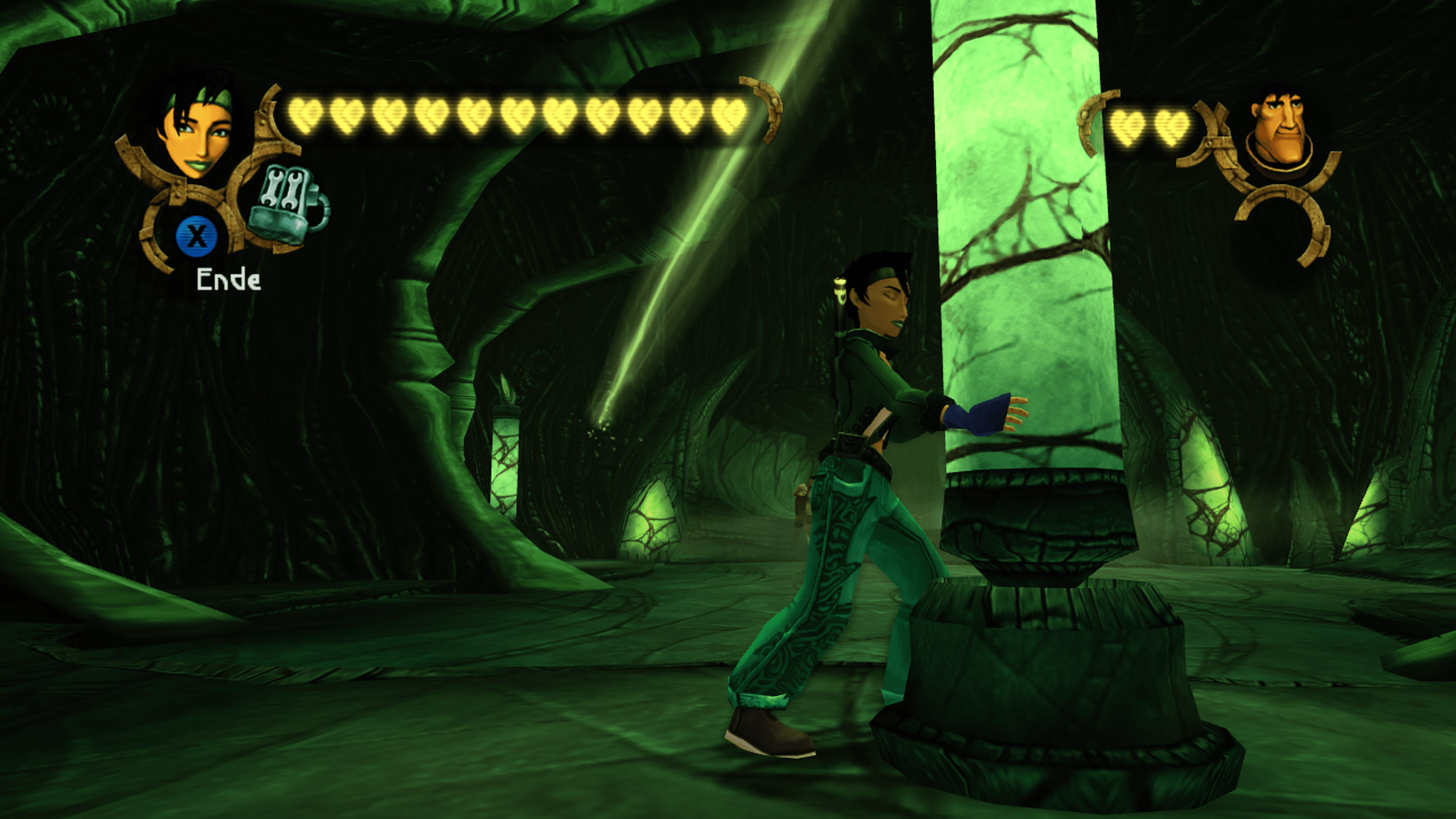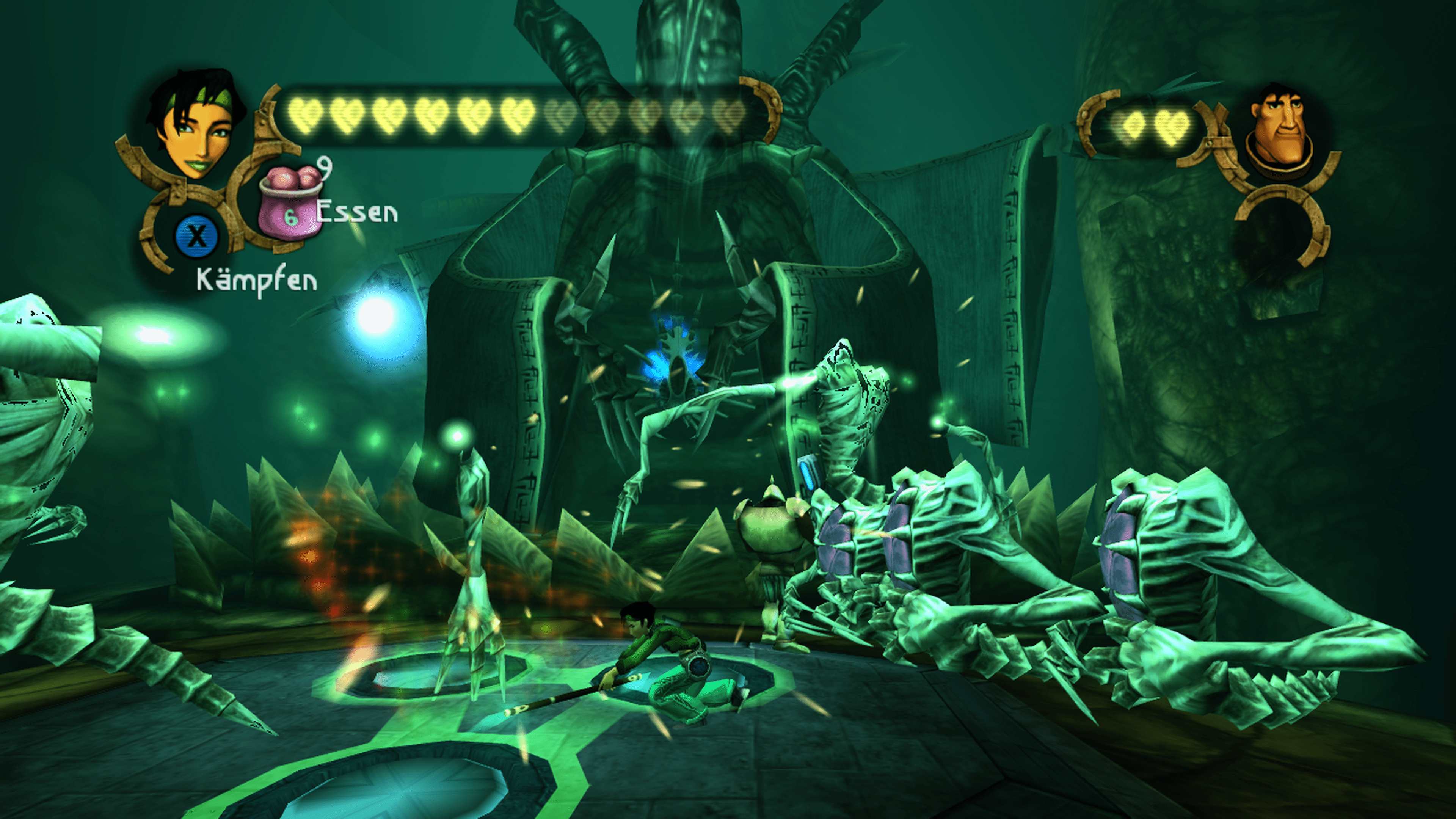 Ach, „Beyond Good & Evil“. Was hatte ich für eine wunderbare Zeit mit diesem schönen Spiel, speziell in der Remaster-Version – diese stilvolle Welt, diese clever definierten Figuren, dieser wunderbare Soundtrack! Und dann wurde ich Opfer vom „missing person bug“, bei dem Double H schlicht verschwindet, woraufhin das Spiel an einer Stelle (nach dem Schlachthaus) schlicht nicht mehr weitergeht. Und da ich Vollidiot nur zwei Spielstände angelegt hatte, und das Nutzen des vorherigen bedeutet hätte, dass ich mehr als vier Stunden nochmal spielen müsste, habe ich es gelassen.