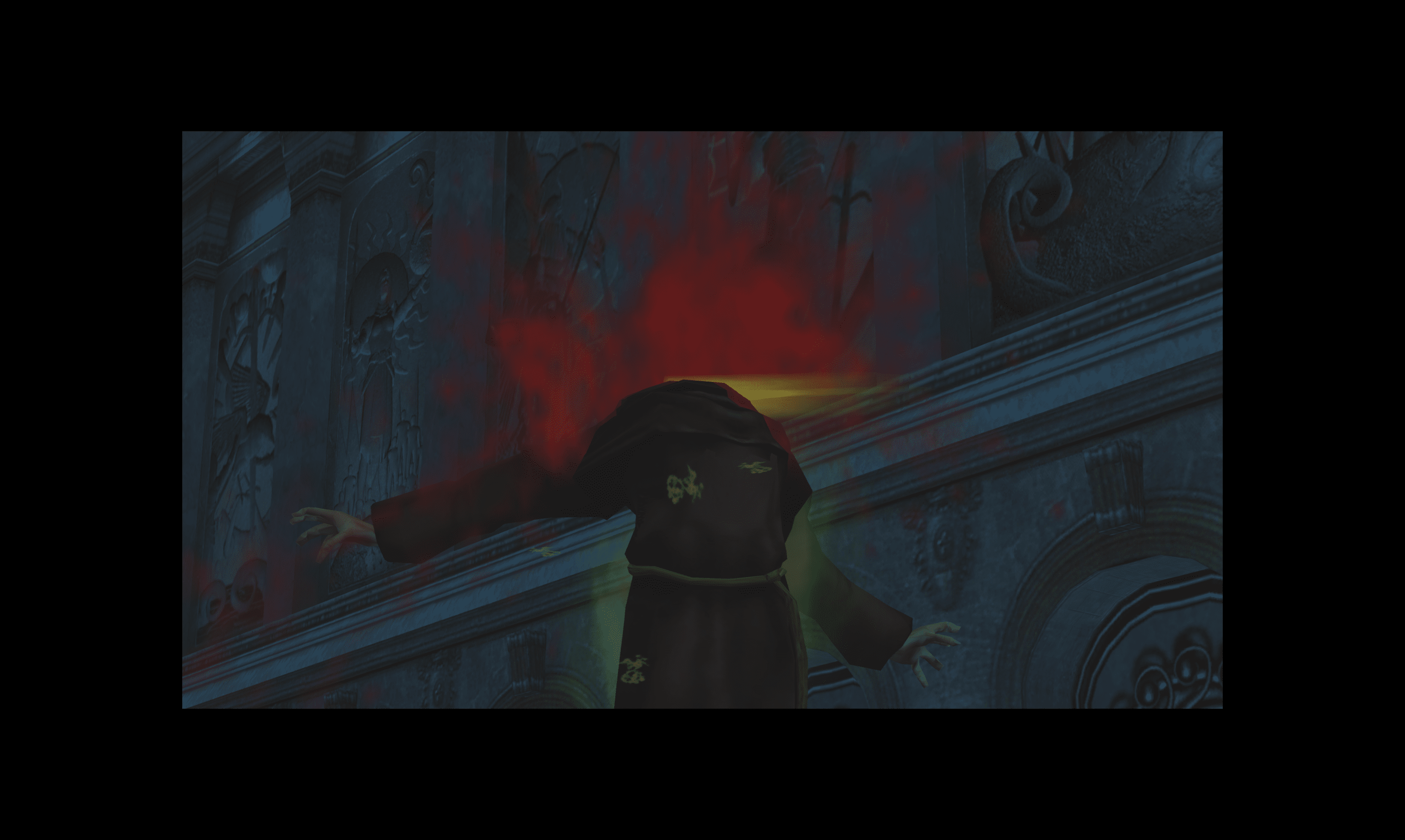 Das alles soll dich auch nicht wirklich schocken oder deine Figur umbringen, Eternal Darkness ist eben kein Schockerspiel. Das soll dir nur ein Unbehagen vermitteln. Und bei den meisten Usern wird das schon so geklappt haben. Ist doch schön, dass das Spiel seine Spieler(innen) so ernst nimmt, dass es das Abgleiten in den Wahnsinn nicht nur mit Gesundheitsverlust und Jump Scares bestraft.